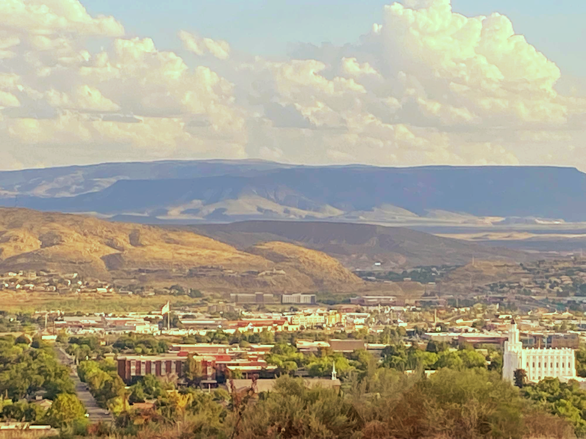 St.George 중심부의 화려한 전망에 흰색의 몰몬
