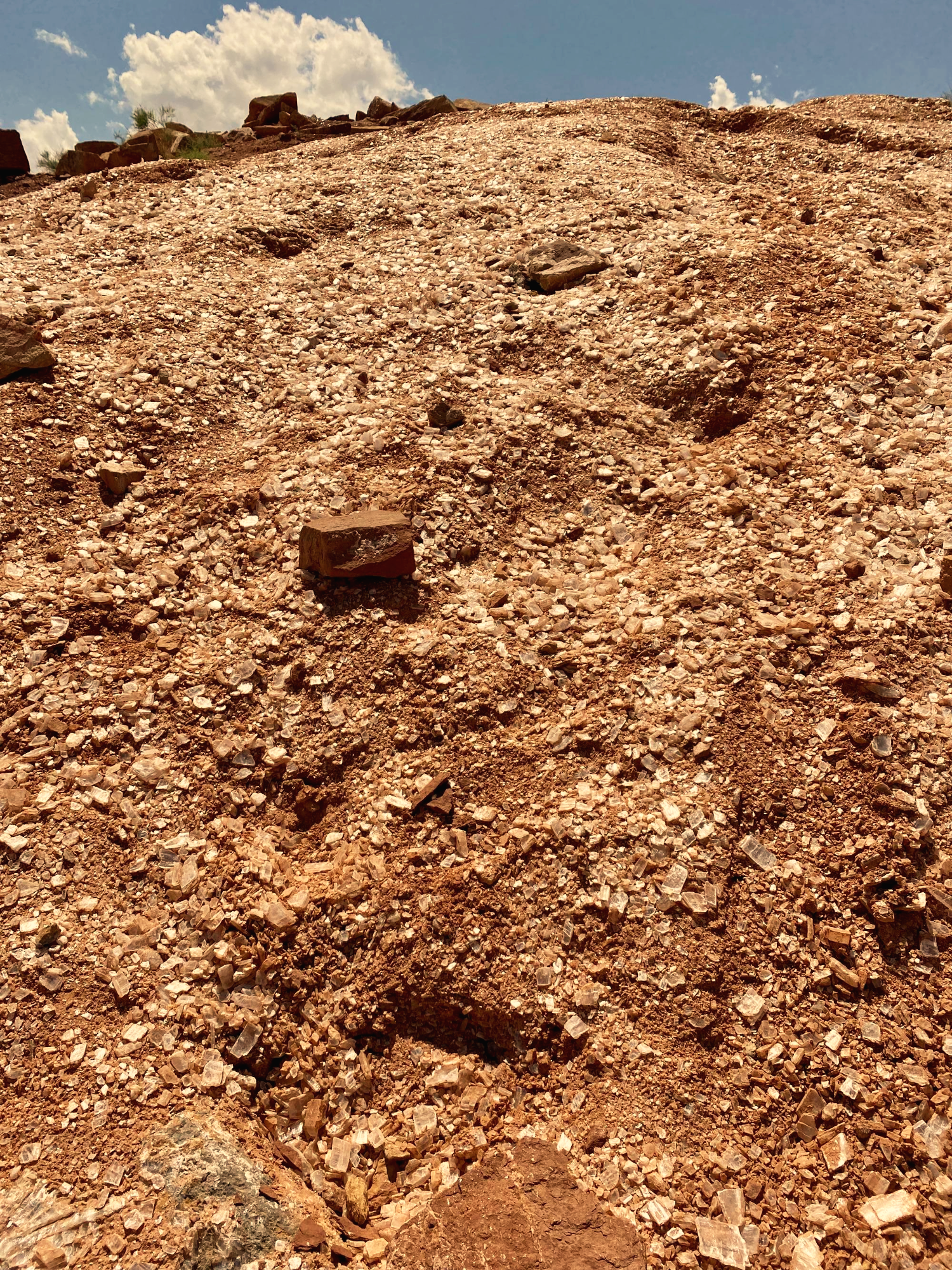 석고 조각으로 덮인 흙더미와 땅 그리고 직접 광물을