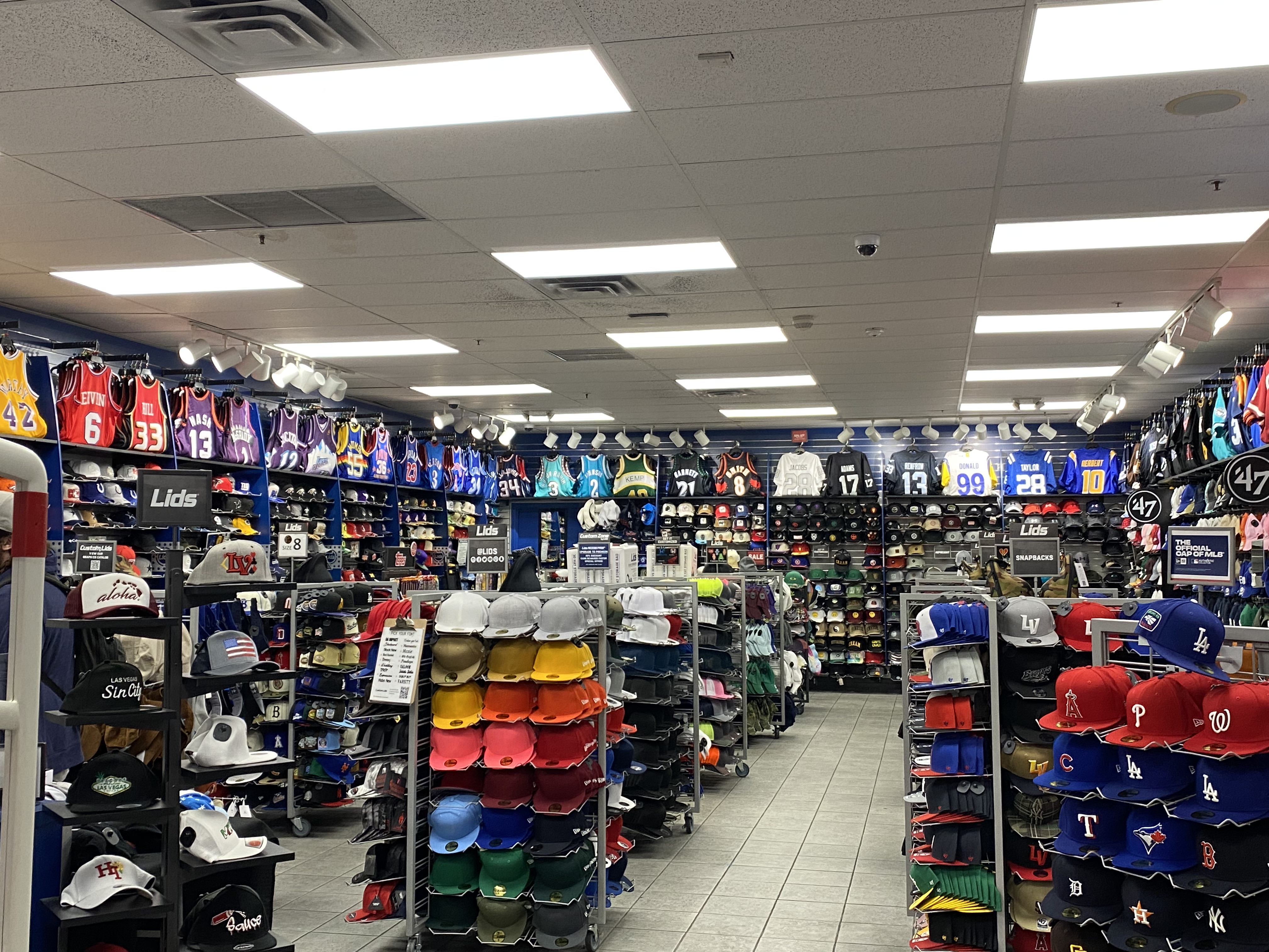 스포츠용 모자와 유니폼을 팔고 있다