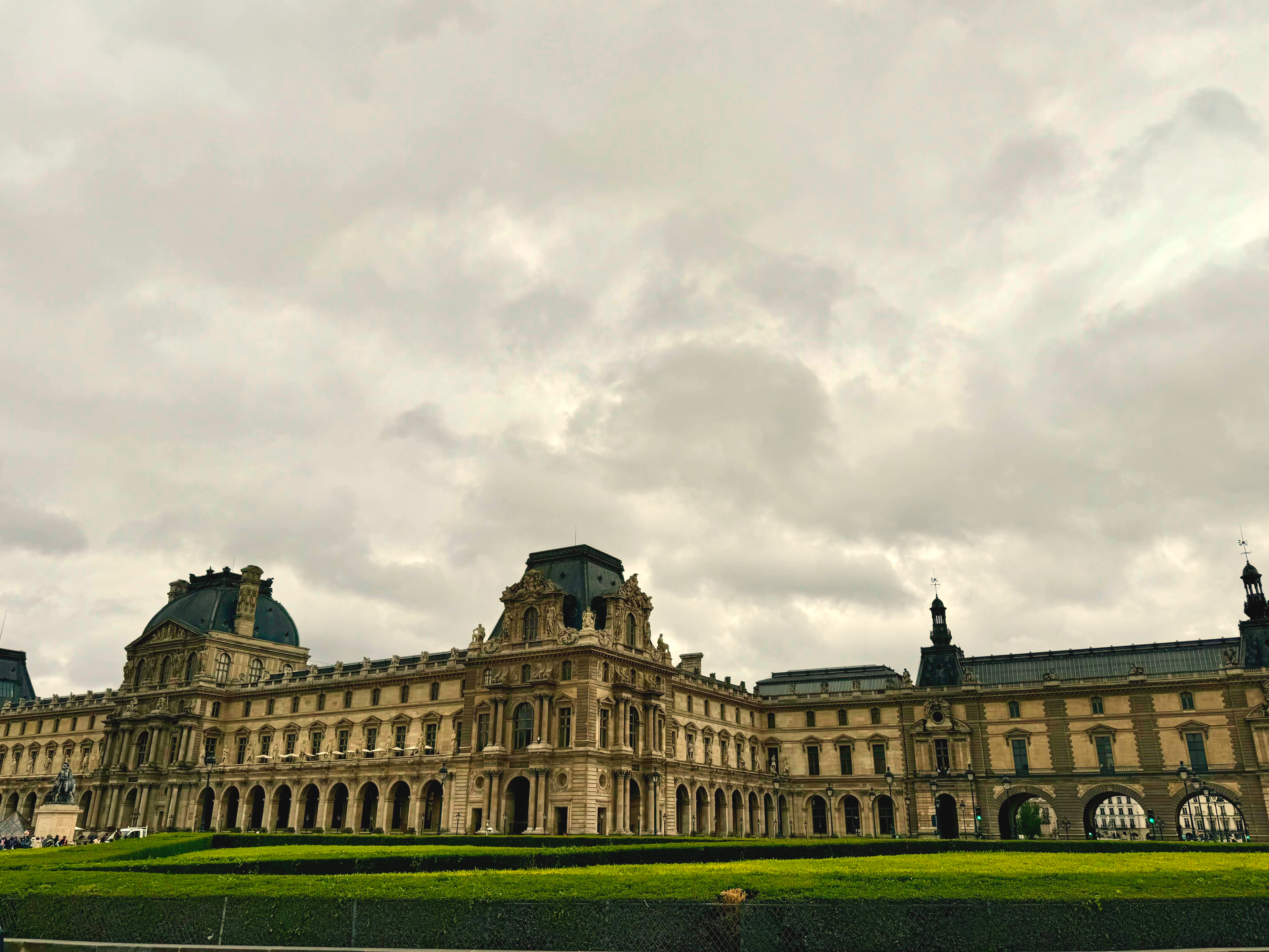 맑게 개였으며 카루젤 개선문은 건물사이 광장에 가장